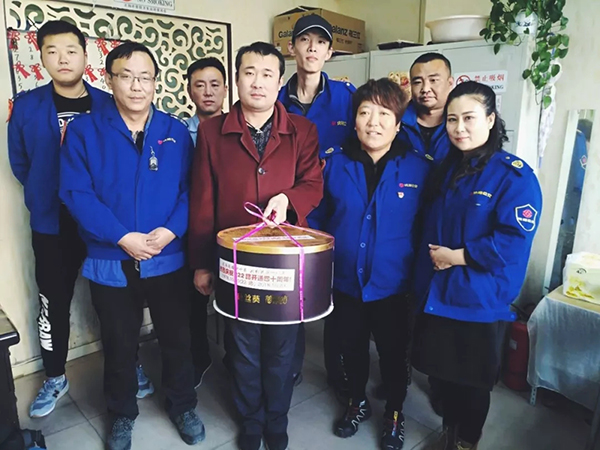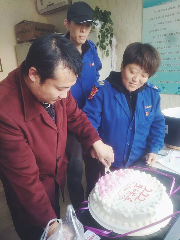 在這個(gè)值得慶祝的時(shí)刻,有一位多年乘坐222路公交車的鐵粉兒,得知20日是222路開通整40周年的日子,特意為車隊(duì)送來了自己訂做的蛋糕,上面寫著:風(fēng)雨同路四十載,此刻共慶2018年!
