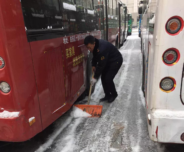 2019年2月15日、19日沈城兩次降雪,每一次的雨雪天氣的來(lái)襲,都是對(duì)全體一線公交人都是嚴(yán)峻的考驗(yàn)。面對(duì)惡劣天氣,各單位多項(xiàng)舉措在雨雪中連夜奮戰(zhàn),干部職工上下一心,紛紛提前到崗,清理場(chǎng)區(qū)、站區(qū)、車輛積雪,做好出車前的各項(xiàng)例行檢查,全力保障市民安全出行。大家不畏嚴(yán)寒、齊心協(xié)力、配合默契,忙碌的身影在雪天里形成了一道最亮麗的風(fēng)景線。