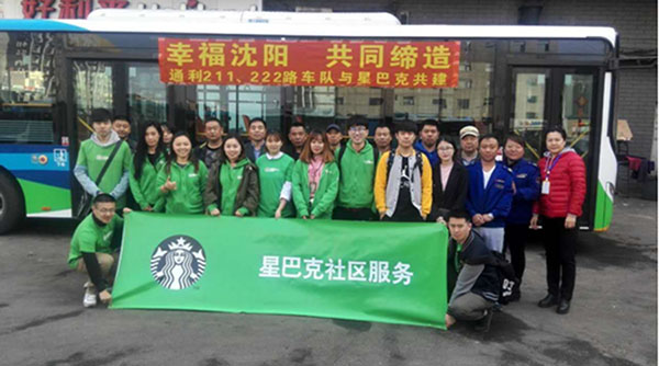 圖為: 211、222路車(chē)隊(duì)黨支部與星巴克開(kāi)展“幸福沈陽(yáng),共同締造”主題共建活動(dòng)。