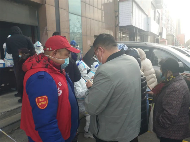 防控疫情哪里需要黨員干部,黨員干部就戰(zhàn)斗在哪里。核酸檢測是防控疫情的必要手段。3月21日早上,通利公司黨委書記、經(jīng)理黃丹準備到單位上班,到小區(qū)門口發(fā)現(xiàn),小區(qū)被封了,一打聽得知,小區(qū)半夜3點被管控封閉。得知當天小區(qū)做全員核酸,便通過微信向社區(qū)請戰(zhàn),對方負責同志告訴他非常需要志愿者,但得先做雙彩后再決定是否用。在等待期間,黃丹聯(lián)系了同小區(qū)的集團同事:黃河公司的干部陳浩,以及陳浩愛人,集團機關的張彤馨。張彤馨聽說后高興得跳了起來,立馬準備上“戰(zhàn)場”。