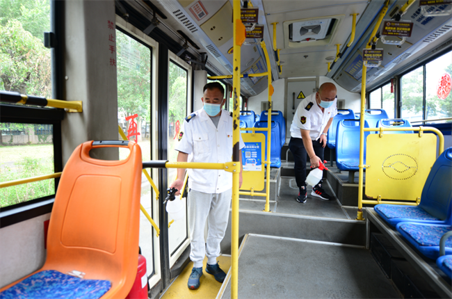 部分車隊在始發(fā)站設(shè)立志愿者服務(wù)點,指導(dǎo)上車乘客掃碼測溫。各車隊每輛公交車到終點后及時對車輛進行消殺,為市民提供良好、安全、舒適的乘車環(huán)境,用實際行動打贏疫情防控殲滅戰(zhàn)。