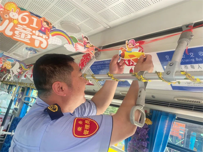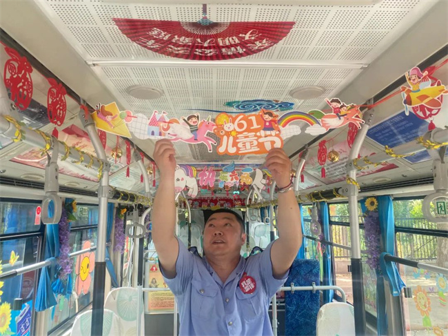 “六一”國際兒童節(jié)前夕,260路駕駛員繆立眾將自己駕駛的公交車精心裝扮一番,自費(fèi)購買了許多小禮物,準(zhǔn)備在兒童節(jié)當(dāng)天送給乘坐公交車的小朋友,為他們帶來一份驚喜和快樂。