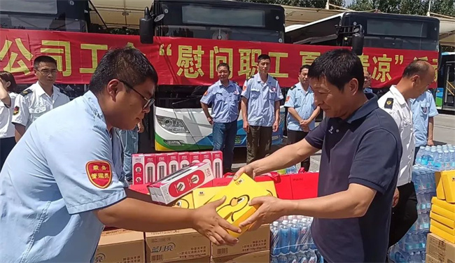 活動(dòng)中,公司領(lǐng)導(dǎo)班子成員親手將鹽汽水、礦泉水、毛巾、水杯等防暑降溫物品分發(fā)給所屬11個(gè)車隊(duì)的22條線路,為堅(jiān)守在工作崗位上的干部職工送去清涼、送上關(guān)愛(ài),對(duì)大家不畏高溫、堅(jiān)守崗位的敬業(yè)精神給予了充分肯定,囑咐大家在高溫天氣中,既要保證安全行車,也要確保身心健康。同時(shí),勉勵(lì)大家繼續(xù)提升服務(wù)品質(zhì),讓“黃河服務(wù) 千家萬(wàn)戶”的服務(wù)品牌,傳遍沈城的大街小巷。