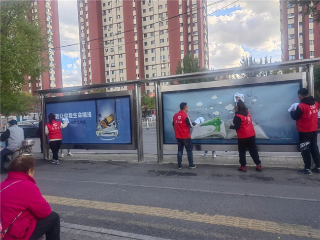 活動(dòng)中,志愿者們手拿抹布、水桶、掃帚等清潔工具,認(rèn)真對(duì)廣場(chǎng)、綠地的衛(wèi)生及周邊的隔離護(hù)欄、公交候車亭及站牌、街路牌、果皮箱等公共設(shè)施進(jìn)行徹底擦拭清潔。志愿者們充分發(fā)揚(yáng)奉獻(xiàn)精神,用實(shí)際行動(dòng)換來(lái)了廣場(chǎng)環(huán)境面貌的煥然一新,也收獲了過(guò)往市民群眾的連連稱贊。