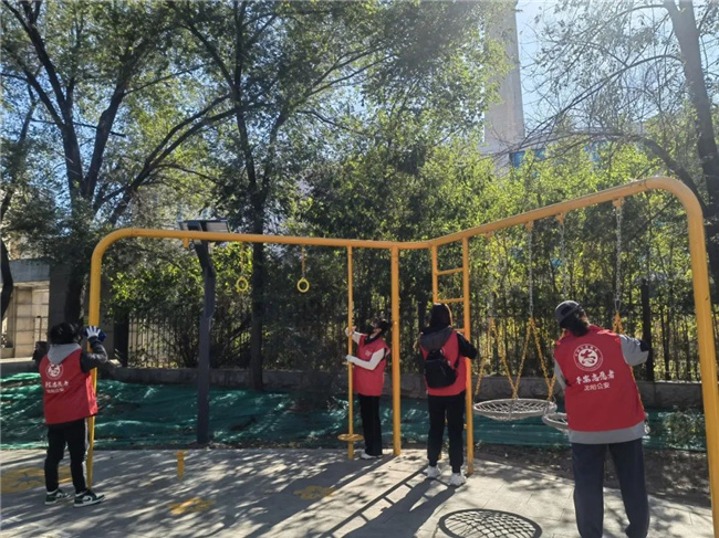 活動中,志愿者們身穿紅馬甲,化身“志愿紅”,大家一同來到附近轄區(qū)的園區(qū)內(nèi)開展“大清掃”活動,對街道上的護(hù)欄、公交候車?yán)燃罢九频裙苍O(shè)施進(jìn)行擦拭清潔,此外,志愿者們對綠地上的垃圾進(jìn)行了統(tǒng)一清掃。