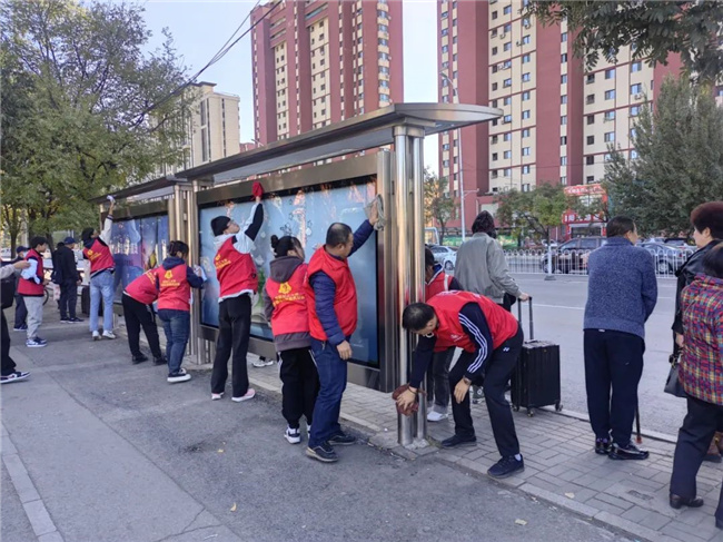 活動中,大家充分發(fā)揚(yáng)“不怕臟、不怕累”的奉獻(xiàn)精神,對車站的隔離護(hù)欄、侯車亭站牌及公園內(nèi)健身器材擦拭干凈,將路邊停放的共享單車擺放整齊,并清掃路邊落葉,用實(shí)際行動使周邊環(huán)境面貌煥然一新。