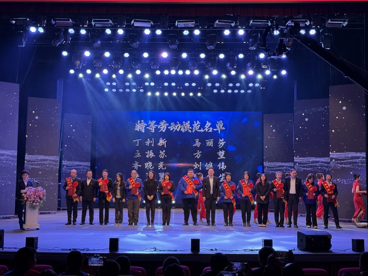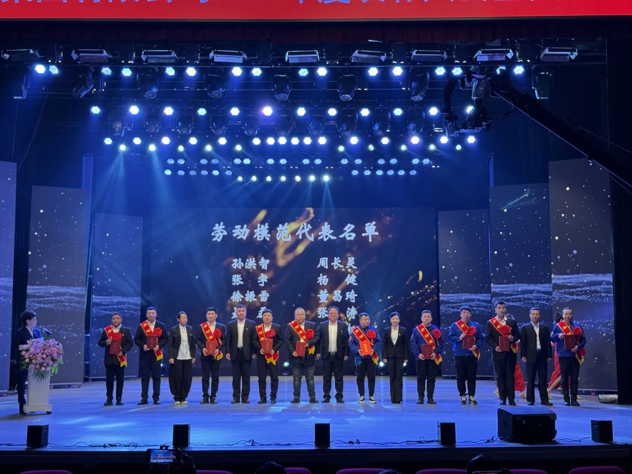 勞動模范代表上臺領(lǐng)獎