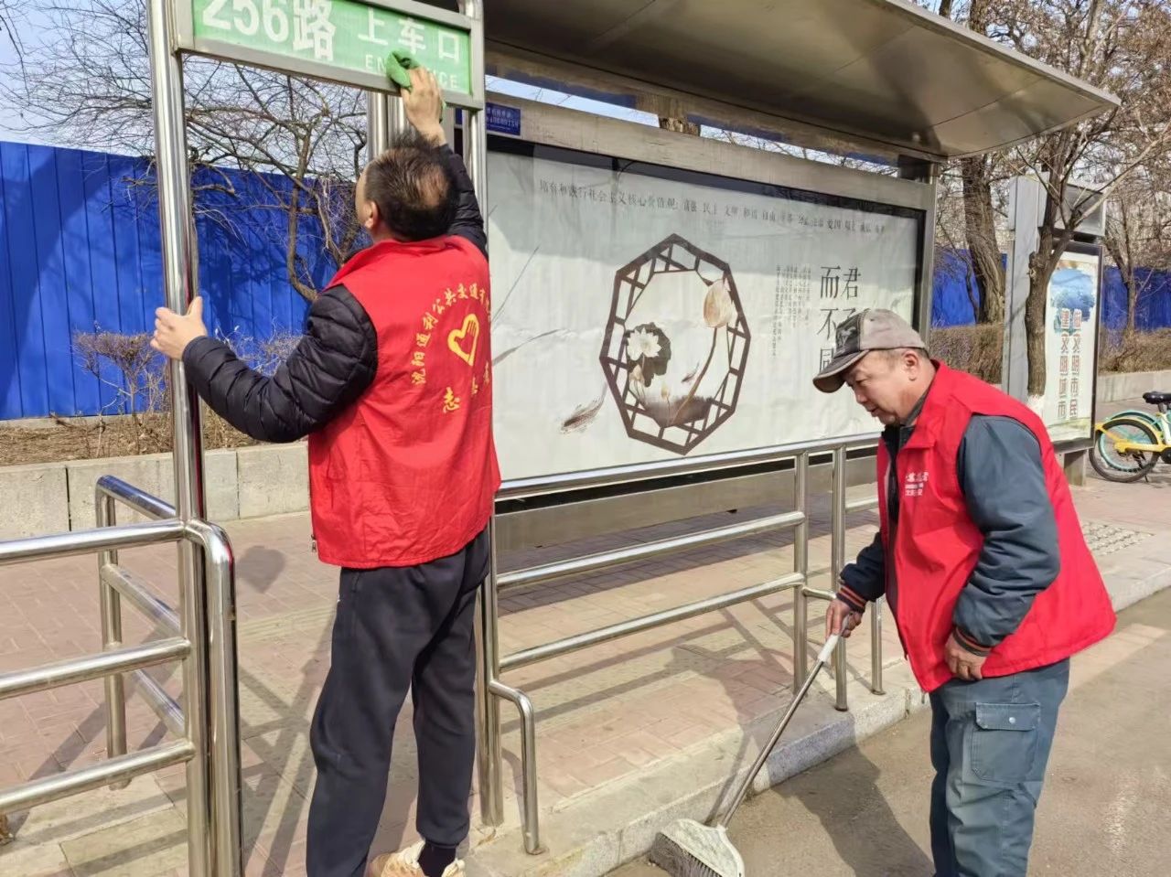 路過的市民看到志愿者忙碌的身影連連點(diǎn)贊,還有熱心市民主動(dòng)加入志愿隊(duì)伍出一份力。最終在全體黨員志愿者和熱心市民的共同努力下累計(jì)清理垃圾10余袋,處理小粘貼20余處,場(chǎng)區(qū)和候車?yán)刃l(wèi)生煥然一新。