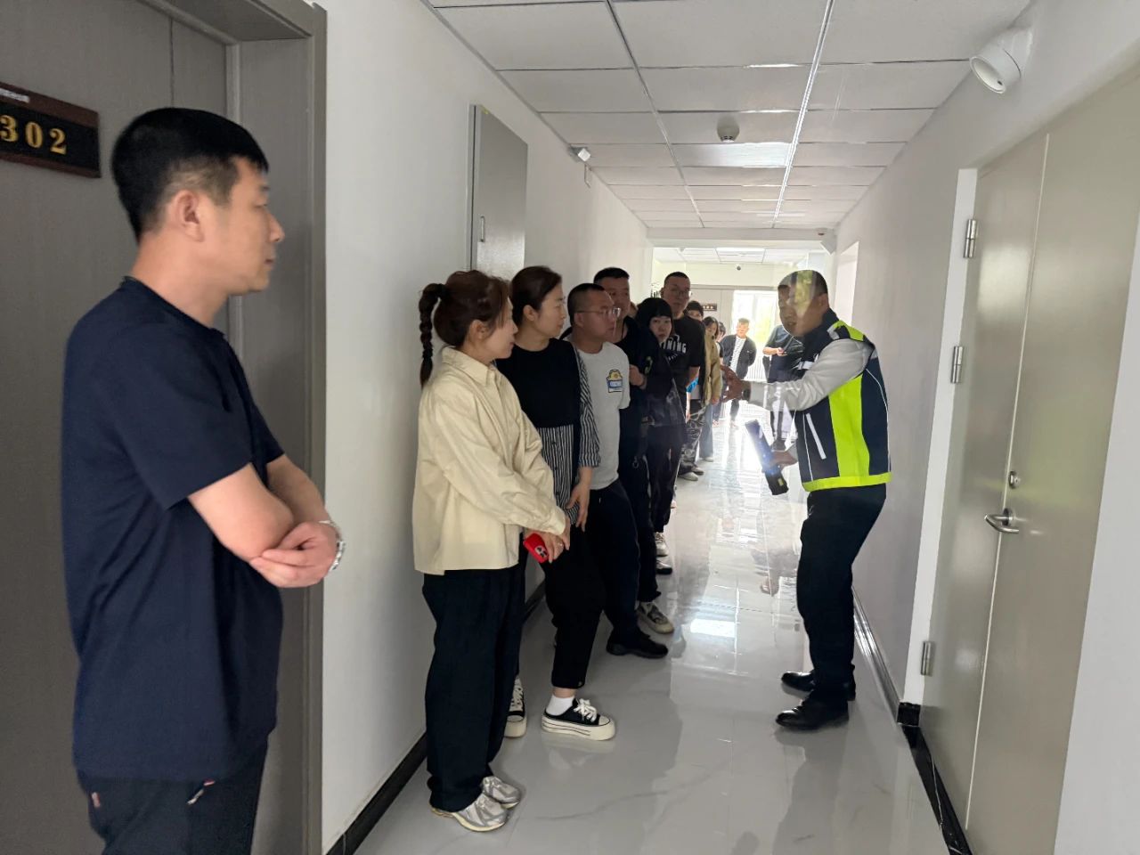 現(xiàn)場演練環(huán)節(jié),“火情警報”突然在辦公樓內(nèi)拉響,滾滾濃煙瞬間彌漫走廊。在疏散引導(dǎo)員的指揮下,大家迅速捂住口鼻,彎腰俯身,按照預(yù)定疏散路線,從各樓層有序撤離。整個過程緊張有序,大家爭分奪秒?yún)s不忘保持秩序,全體人員安全抵達(dá)指定疏散集合點。