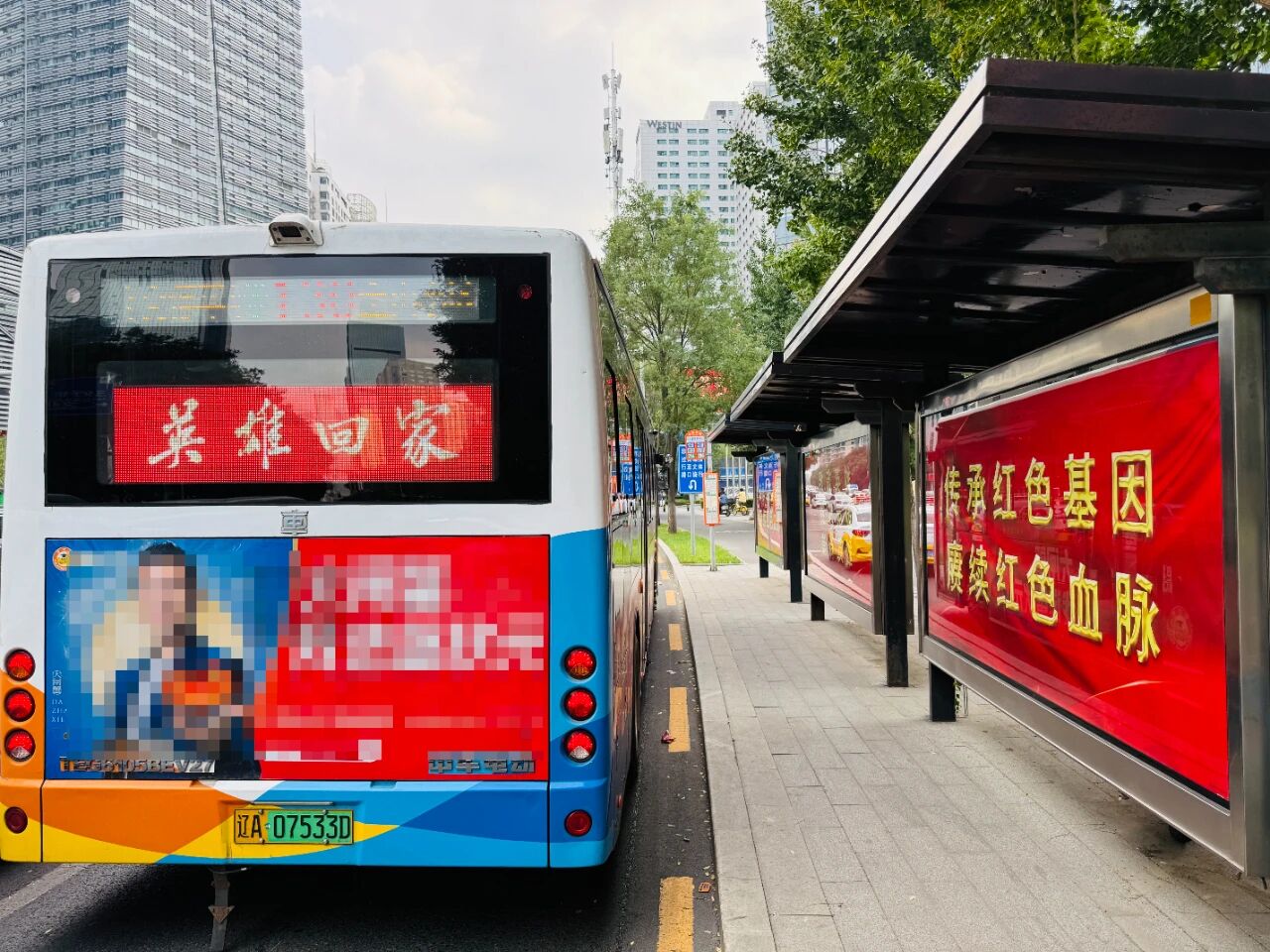 此外,在9月11日至13日期間,沈陽(yáng)客運(yùn)集團(tuán)旗下175條公交線路的車輛后視屏循環(huán)播放“英雄回家”宣傳標(biāo)語(yǔ),以最直觀的方式向英雄致敬。