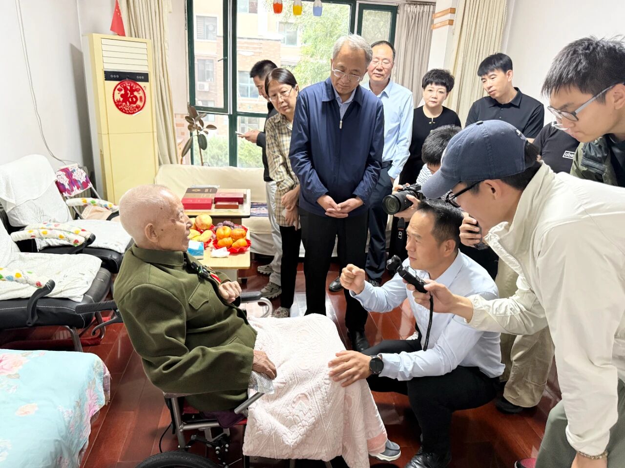慰問過程中,韓宗森老同志與家人深情回顧了當(dāng)年的革命歷程,特別是抗戰(zhàn)時期的崢嶸歲月和英勇事跡?,F(xiàn)場氣氛熱烈,韓老還和大家一起高唱《中國人民志愿軍戰(zhàn)歌》。雖已年過九旬,他依然思維敏捷、聲音洪亮、精神矍鑠。在場的工作人員和退役軍人無不為之動容,自發(fā)地向韓老行莊嚴(yán)的軍禮,表達(dá)由衷的敬意。