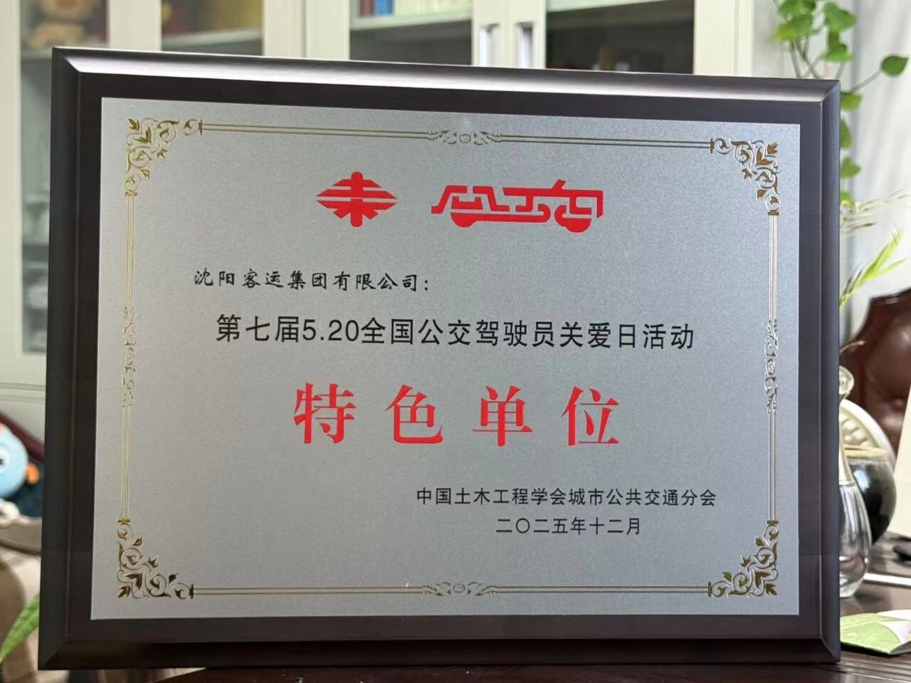 12月5日,從哈爾濱召開的“中國土木工程學會城市公共交通分會十一屆五次理事會會議”暨“2025城市公共交通學術(shù)年會”上傳來喜訊:沈陽客運集團榮獲“第七屆5·20全國公交駕駛員關(guān)愛日活動特色單位”稱號。
