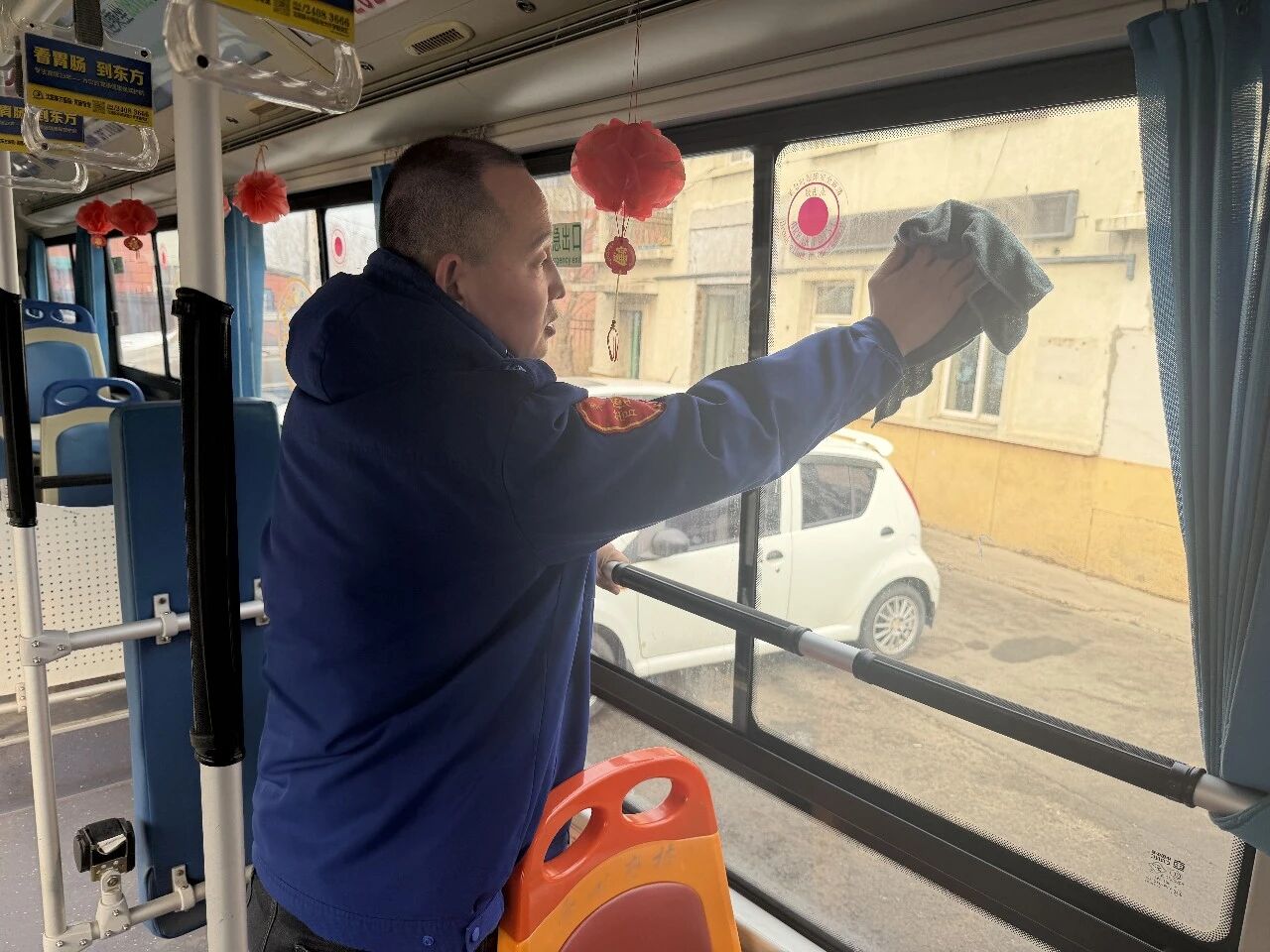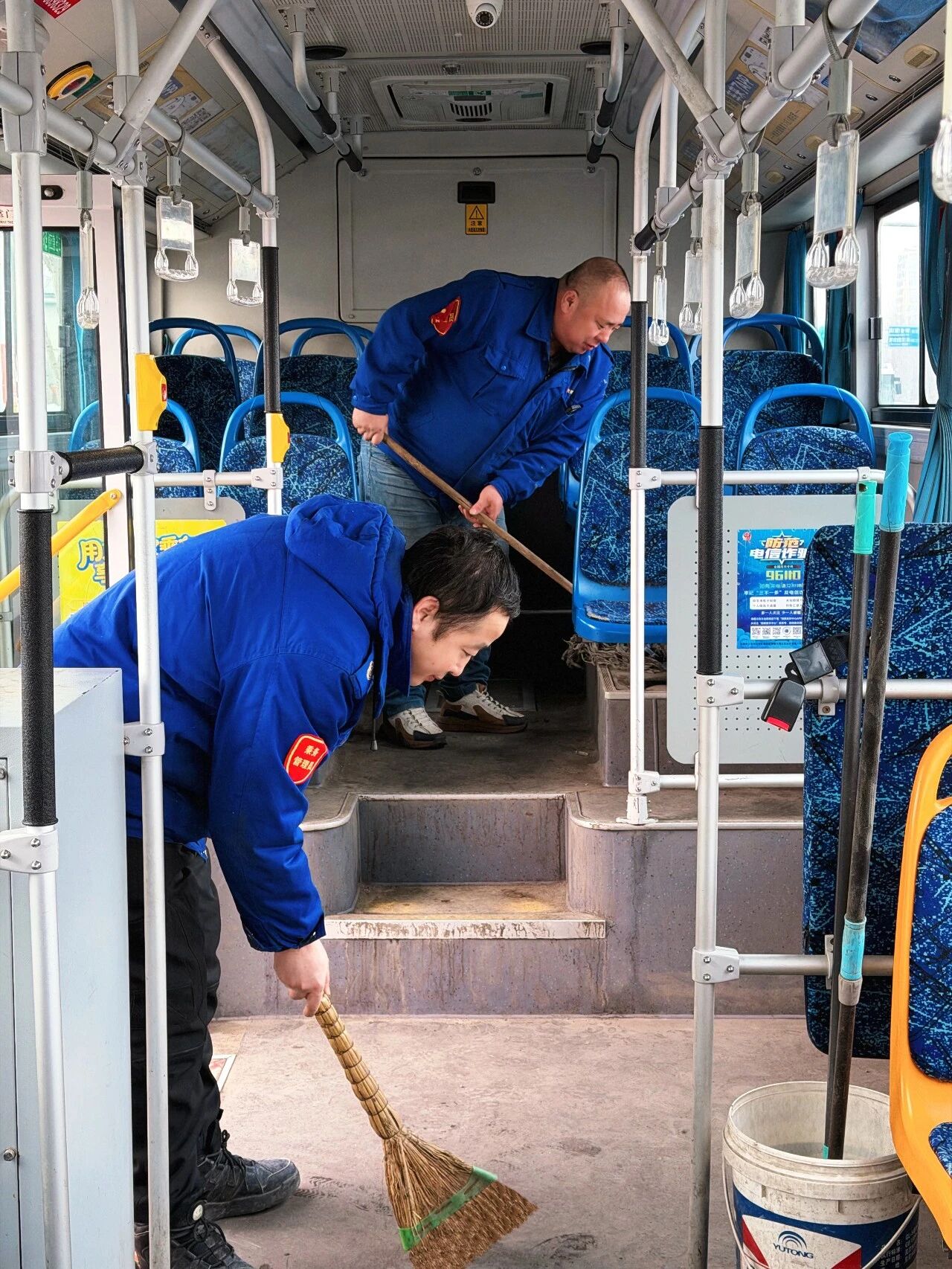 本次行動嚴格對標“四無六凈”衛(wèi)生標準,對車輛進行全方位、無死角的深度清潔。駕駛員們利用行車間隙與班后時間,不畏嚴寒,細致擦拭車身,沖洗輪胎輪轂;在車廂內(nèi),他們俯身清掃地板與踏板,仔細清理座椅縫隙,反復擦拭扶手、欄桿與窗沿。不放過每一個角落,不遺漏每一處污漬,切實做到車身光潔如新、車廂窗明幾凈、設施完好整潔,以實際行動擦亮城市流動的“服務窗口”。