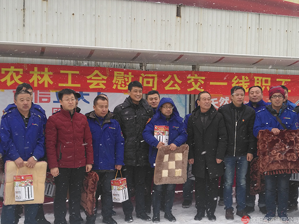 “大雪天的,工會(huì)能來到一線看望我們,我們打心里高興?。 ?月8日上午,沈陽通利公共交通有限公司218路車隊(duì)職工正在站點(diǎn)清掃積雪,令他們沒有想到的是,由市總工會(huì)劉傳甲副主席、農(nóng)林產(chǎn)業(yè)工會(huì)李福志主席帶領(lǐng)的慰問組悄然而至。慰問組為車隊(duì)送上了保溫桶和棉坐墊等慰問品,還送上了暖心的話語,劉傳甲副主席代表市總工會(huì)感謝廣大一線職工為沈城公共交通事業(yè)做出的貢獻(xiàn),并囑咐駕駛員冰雪天氣在做好服務(wù)市民的同時(shí)一定要保證行車安全。