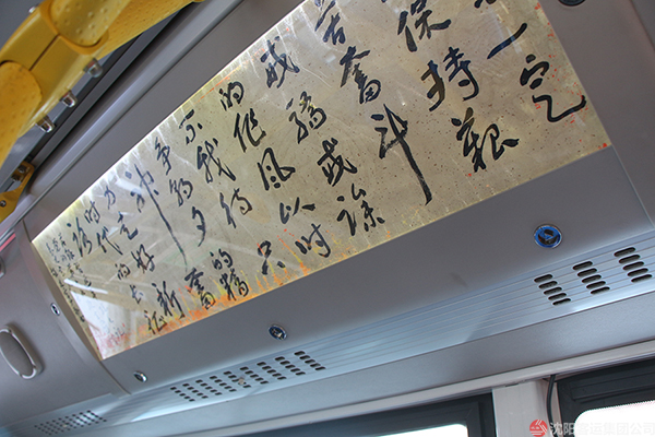 昨日,集團(tuán)公司領(lǐng)導(dǎo)班子一同前往全運(yùn)五路公交樞紐站,檢查全國(guó)首條“藝術(shù)公交”130路車(chē)身設(shè)計(jì),該線路將成為我國(guó)首條“行走的藝術(shù)走廊”。 為給市民,乘客提供美觀、舒適、藝術(shù)氣息濃厚的乘車(chē)環(huán)境,集團(tuán)公司與和平區(qū)文聯(lián)共同設(shè)計(jì)車(chē)身裝飾。首臺(tái)“藝術(shù)公交”車(chē)身外采用我市書(shū)法大家的書(shū)法作品,充分體現(xiàn)了城市獨(dú)有的文化底蘊(yùn)。車(chē)廂內(nèi)看板展示了名家書(shū)法真跡,仿若置于翰林書(shū)院。書(shū)法作品以切實(shí)增強(qiáng)意識(shí)形態(tài)為目的,以宣傳貫徹十九大精神為主題。此外,車(chē)廂前端一側(cè)設(shè)有液晶顯示屏,播放各種藝術(shù)形式的短片。使得公交車(chē)融入了文化的內(nèi)涵,搖身一變成為了城市“流動(dòng)的藝術(shù)展廳?!?/p>