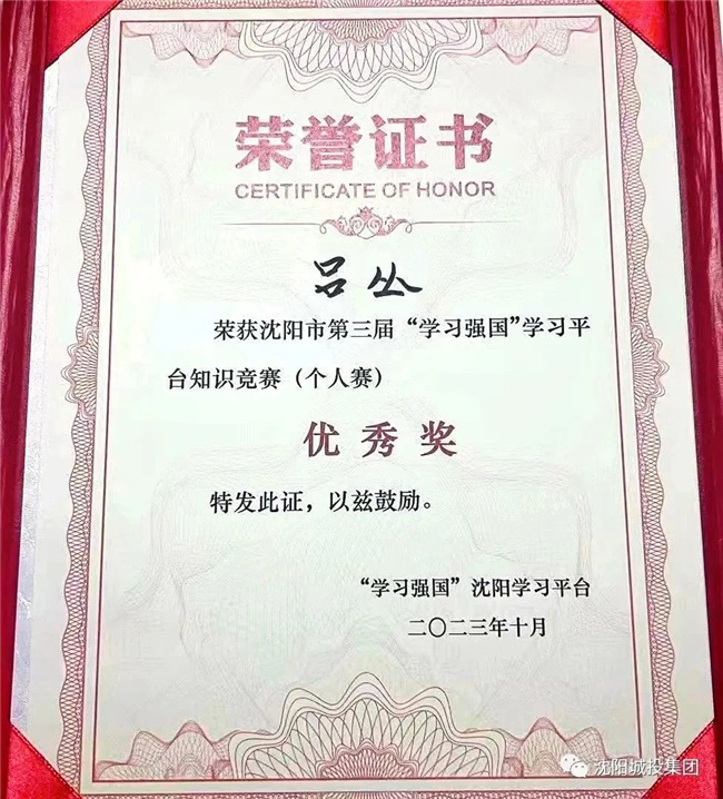 在剛剛結(jié)束的沈陽(yáng)市第三屆“學(xué)習(xí)強(qiáng)國(guó)”學(xué)習(xí)平臺(tái)知識(shí)競(jìng)賽(個(gè)人賽)中,代表市國(guó)資系統(tǒng)參賽的沈陽(yáng)客運(yùn)集團(tuán)呂叢同志,獲得個(gè)人賽優(yōu)...