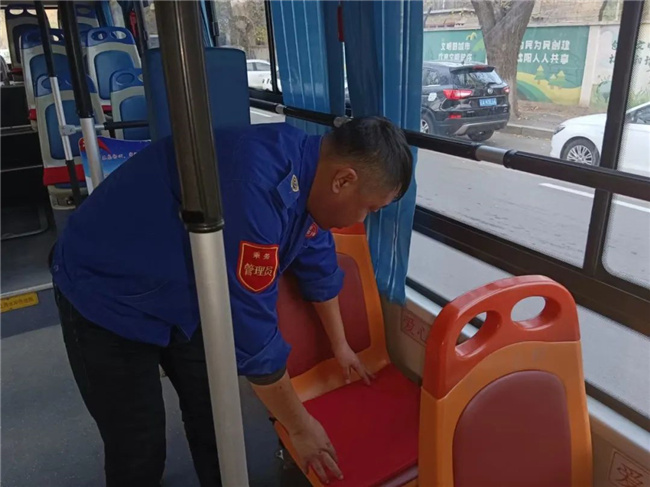 10月31日,298路駕駛員何志強(qiáng)在出車(chē)前將自己事先準(zhǔn)備好的愛(ài)心坐墊套在了乘客座椅上。