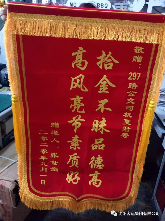 過了一會,張女士來到了站務(wù)室,她回憶到自己乘坐297路公交車,下車的時候發(fā)現(xiàn)手機不見了,于是她求助路人給自己的手機撥打電話,最后得知手機掉落在剛乘坐的公交車上并被駕駛員撿到,張女士對高健隊長和駕駛員夏君秀表示萬分感謝,第二天早晨還送來了錦旗表達自己的謝意。
