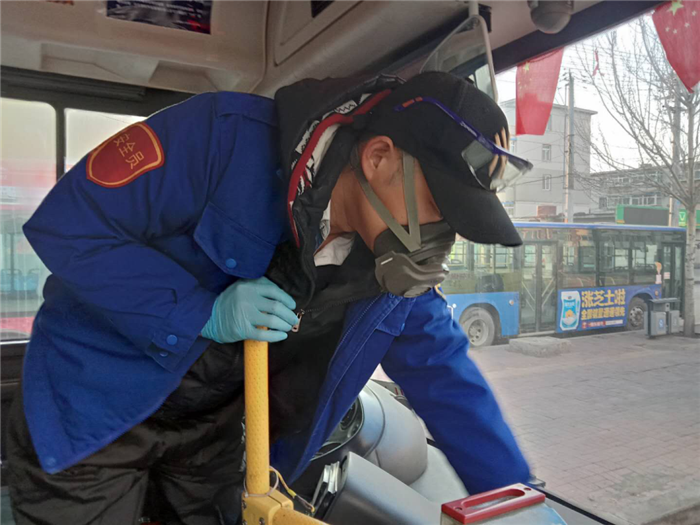 根據(jù)疫情防控情況,399路車隊長劉濤帶領駕駛員們?yōu)楣痪€路常態(tài)化營運默默付出辛勤的勞動。他們堅持每天對所有營運車輛消毒、通風,重點對座椅、扶手、拉環(huán)等乘客易接觸的部位進行擦拭消毒,時刻做好自身防護。車隊要求所有人員上崗必須佩戴口罩和接受體溫檢測,最大限度遏制病毒傳播的渠道。每天在認真做好車輛消毒、通風工作的同時,還積極為乘客做好掃碼登記提醒等工作,盡職盡責,護航每一位乘客。